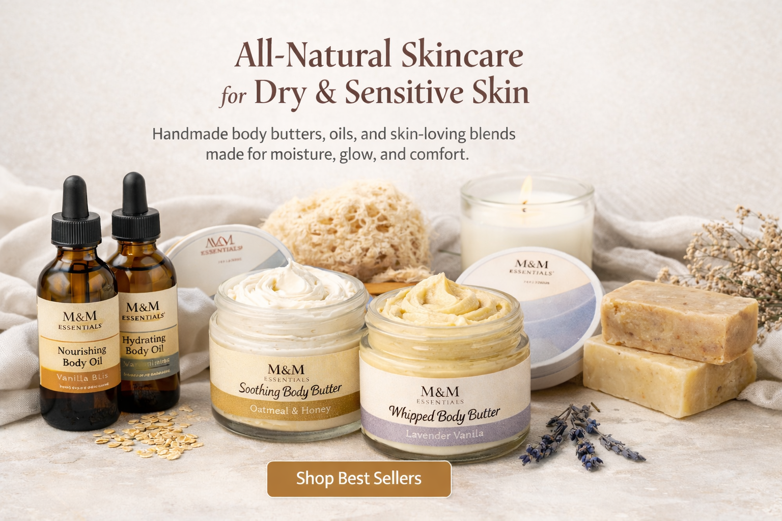 Handmade body butters, oils, and soaps made for moisture, glow, and comfort.